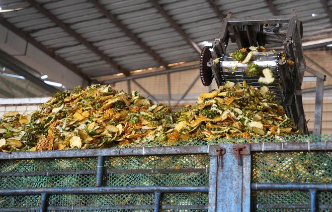 京基智农徐闻基地内,新鲜菠萝废渣先经过粉碎后转运至发酵车间,与米糠粕、豆粕等原料按比例混合后发酵。随后再按比例添加进入饲料生产,制成优质的猪饲料。广东京基智农营养技术部总监杨宽民告诉记者,菠萝废渣含有丰富的膳食纤维和菠萝蛋白酶,能有效促进猪只的肠道吸收和降低粪臭。